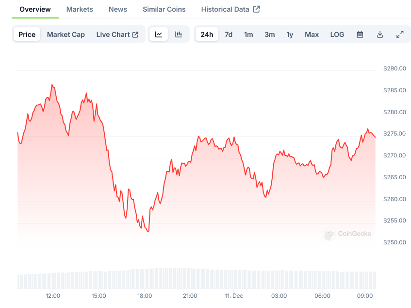 Market observers note that the $300 price level represents the next major resistance target for AAVE. This level has historical importance as a psychological barrier and could prove to be a crucial test of market strength.