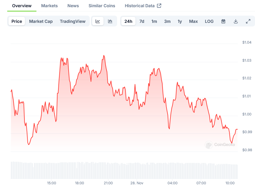 Price has rebounded strongly to $0.99, showing nearly 18.5% weekly gains