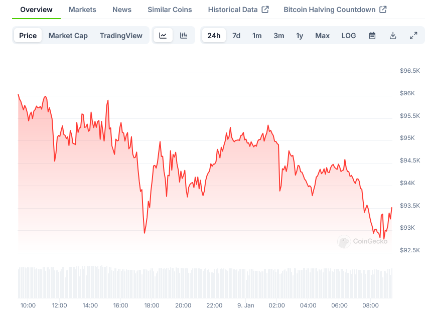 Current market data shows Bitcoin trading at $95,154, representing a 3.6% decrease over 24 hours. This price action reflects the ongoing market adjustment to various economic and political factors.