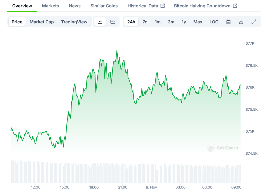 The post Bitcoin Trading Above $75,000 as Political Landscape Shifts appeared first on Blockonomi.