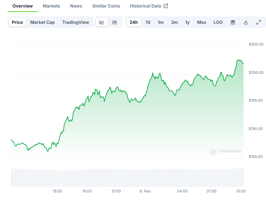 TLDR Solana (SOL) has reached $200, its highest price in 7 months Bitcoin set a new all-time high of $76,872 following Trump’s election win SOL is up 18% over the…