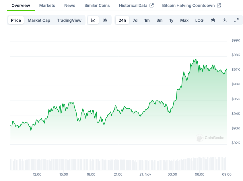 TLDR Bitcoin surpasses $97,000, reaching all-time highs and approaching $100,000 milestone Rally attributed to Republican win and pro-crypto government stance BlackRock’s IBIT options launch successful with $2 billion first-day milestone…