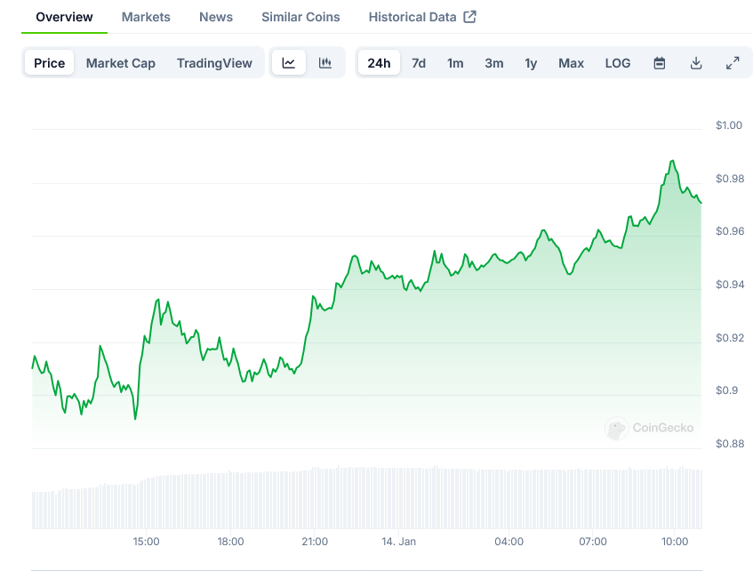 Should the price action remain positive, the next resistance level to watch is $0.9750. However, the most critical barrier remains at $1.00, which previously acted as a support level before the recent decline.