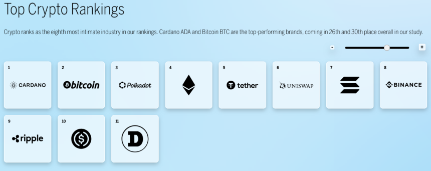 Cardano ranked as the 26th corporate brand globally, ahead of major companies like Walmart and Toyota