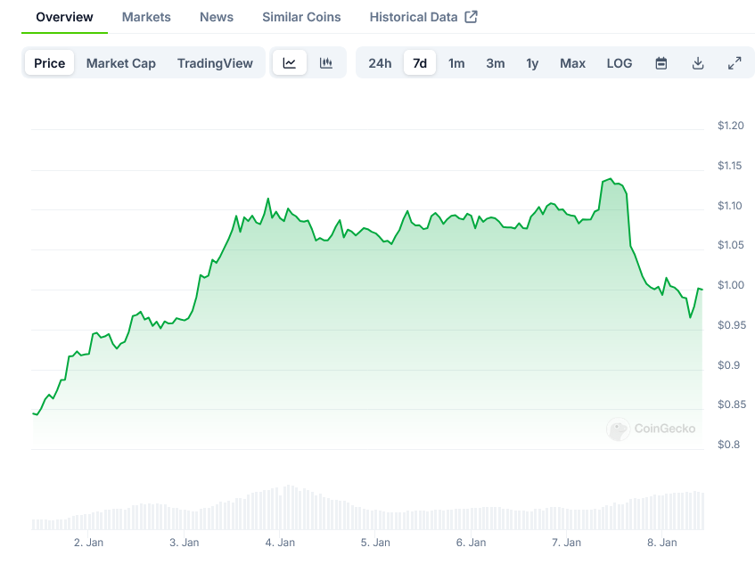 Traders and investors are closely watching the $1.11 price level, which has emerged as a crucial resistance point. This level has already rejected the price once during the January 3rd attempt, leading to the current consolidation phase.