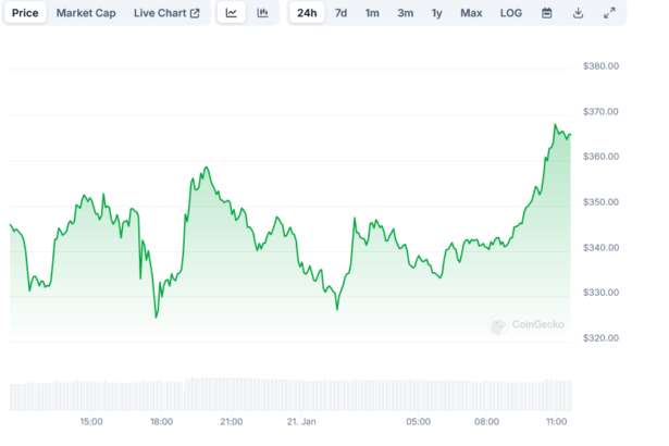 AAVE Token Surges Past $350 as Trump’s Company Increases Holdings and Network Activity Grows