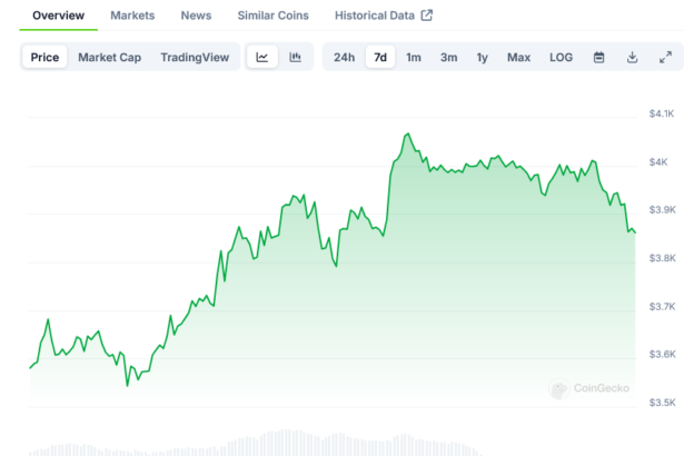 Ethereum (ETH) Price: Breaks $4,000 as Weekly Transactions Hit $17.15 Billion