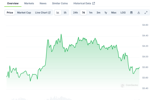 SUI Token [SUI] Price: Surges 35% to Record $4.23 Weekly Close Amid Rising Volume
