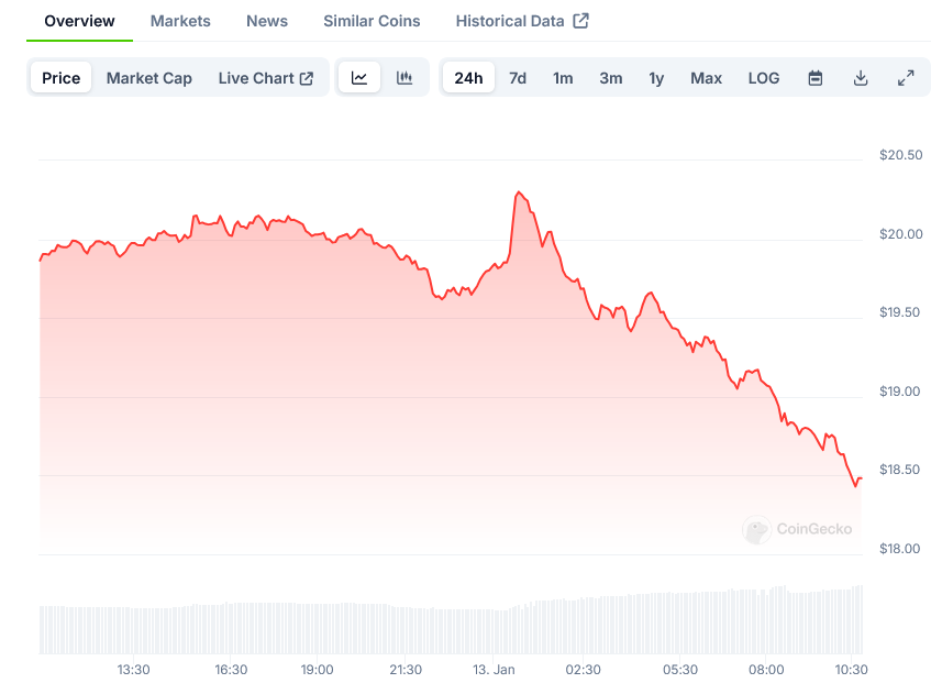 The cryptocurrency market is closely watching Chainlink (LINK) as it trades at $20.17, marking a 0.62% increase in recent trading. The digital asset has formed a descending wedge pattern, typically considered a bullish technical formation, while showing strengthening fundamentals across multiple metrics.