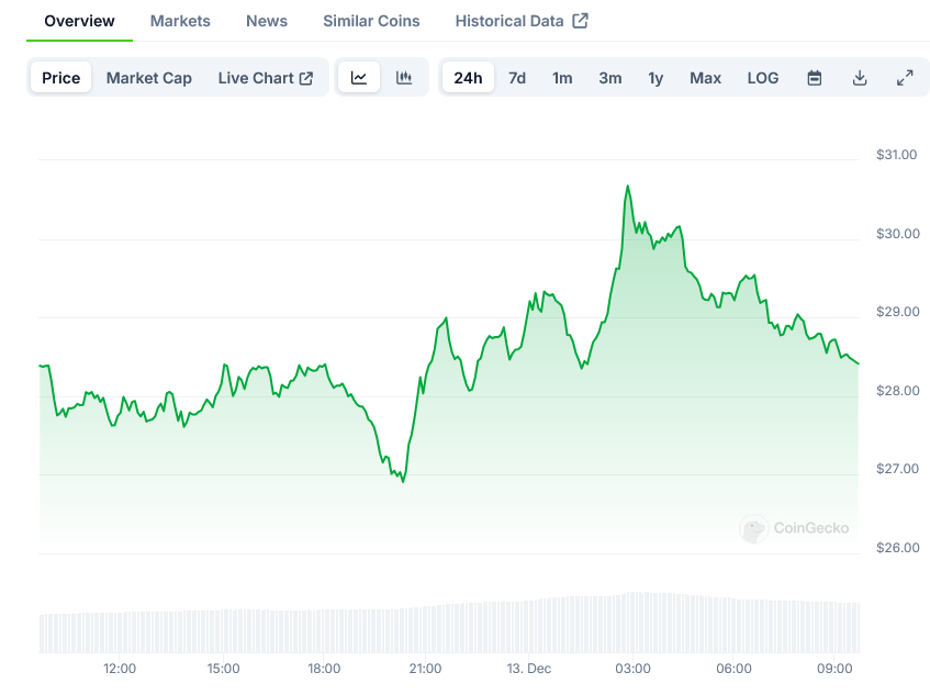 Chainlink’s LINK token has reached $29.45, marking its highest price point since January 2022. The surge comes as World Liberty Financial, a crypto platform backed by Donald Trump, made two consecutive $1 million purchases of LINK tokens.