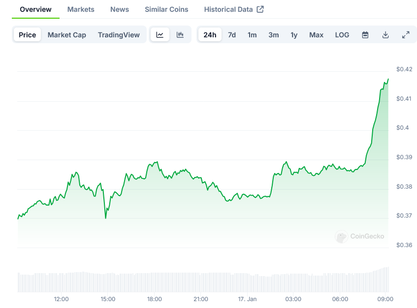 Price targets from various analysts range widely, with some suggesting conservative estimates around $2, while more bullish predictions extend to the $4-$23 range. CoinCodex’s analysis indicates a consolidation period until March 24, 2025, followed by a potential breakout to $0.50 by March 27, 2025.