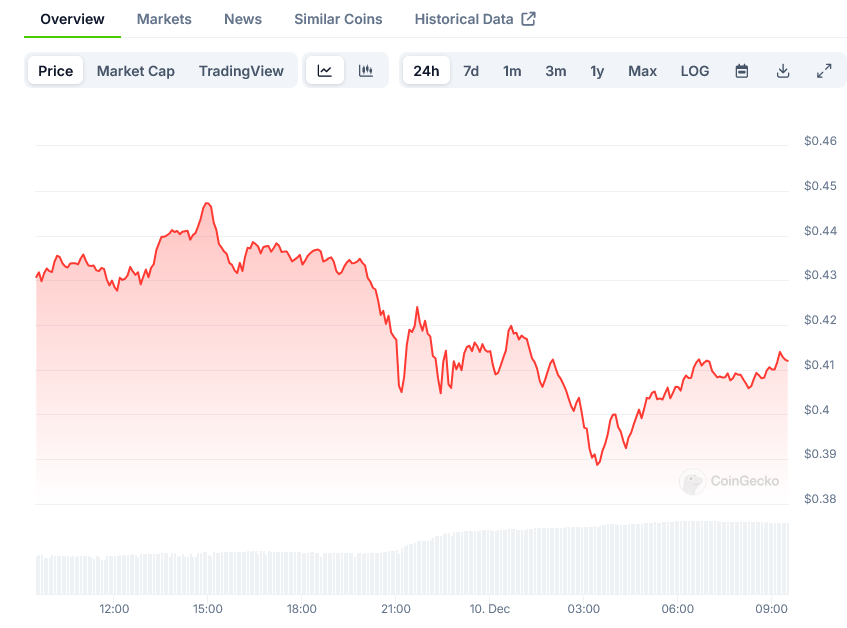 Currently trading at $0.4088, down 7.15% daily and 1.39% weekly