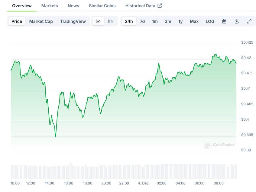 Technical analysis of price movements shows that Dogecoin has maintained support above $0.35 during this accumulation period. This price level has served as a key threshold, with multiple tests of resistance at $0.44 throughout November.
