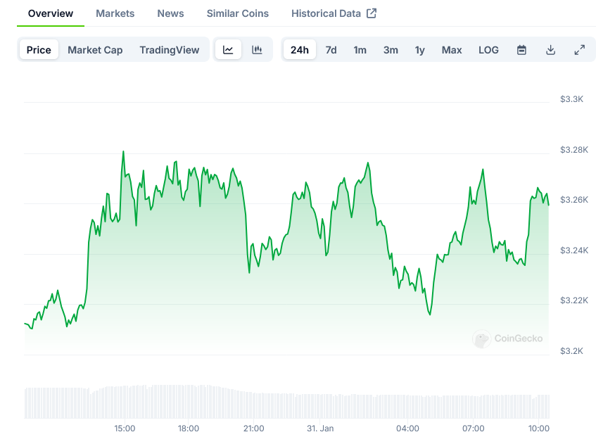 Ethereum surged 5% in a day, reaching above $3,200 level