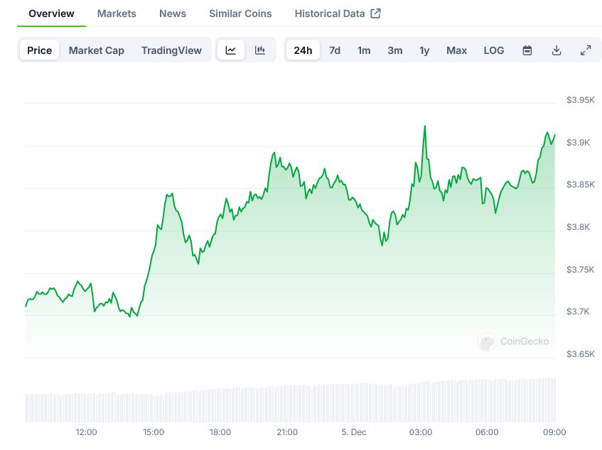 Latest trading sessions show Ethereum maintaining stability above $3,750, with consistent buying pressure appearing at this level. Market participants continue to show interest in accumulating positions at current prices.