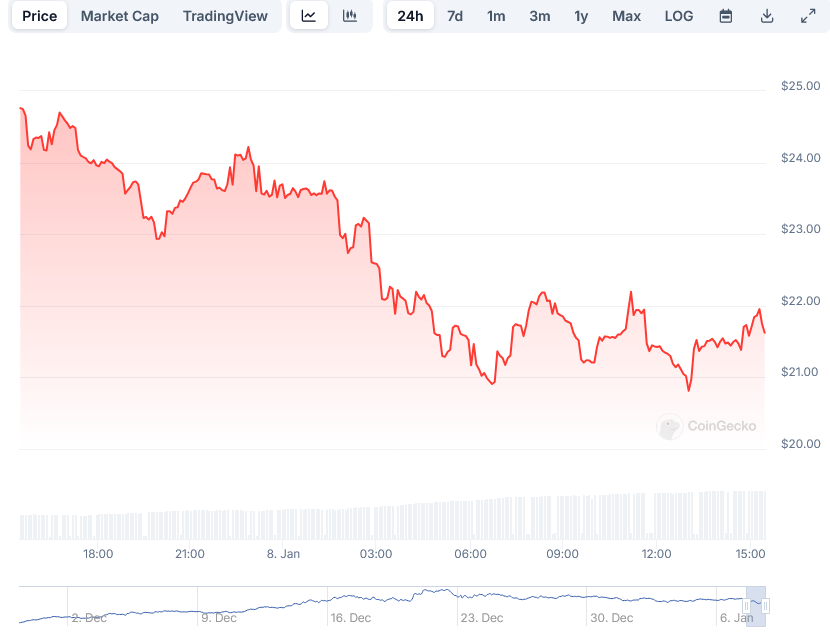Historical data shows that the token’s previous peak reached $35.7, setting a benchmark for potential recovery targets should market conditions improve.