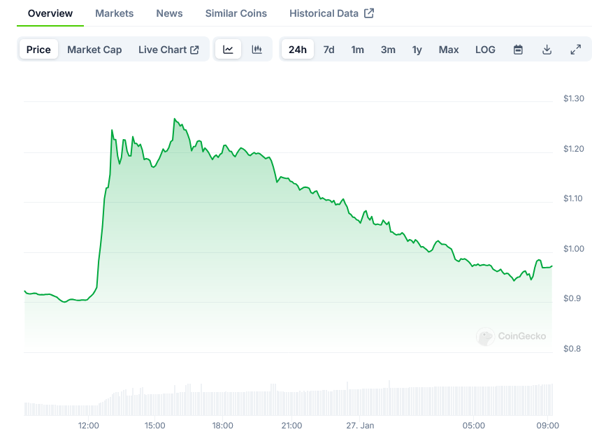 These announcements had an immediate impact on the market, with the JUP token price climbing to $1.27. The price movement reflects positive market sentiment toward Jupiter’s strategic decisions.