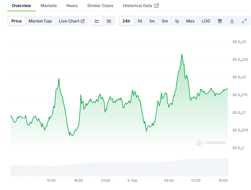 Current trading price is $0.00002068 with 2.5% 24-hour gain and 6.5% volume increase