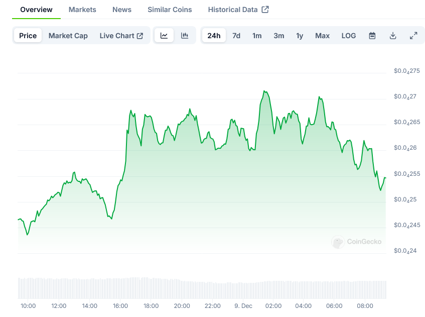 The token spent most of the past week consolidating around the $0.000022 level before breaking out to new highs. This followed a period of relative stability in October, after which November saw a parabolic price increase that broke through previous resistance levels.