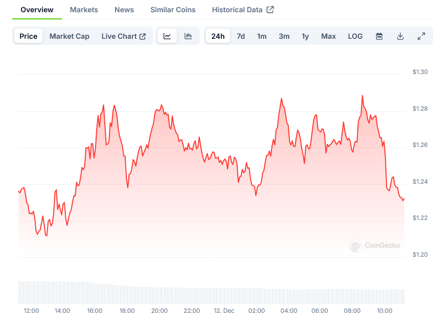 The digital asset, currently trading at $1.20, has attracted renewed buyer interest after testing the crucial dollar support level. Market data indicates a steady increase in trading volume, with buyers stepping in to defend the price floor established at $1.