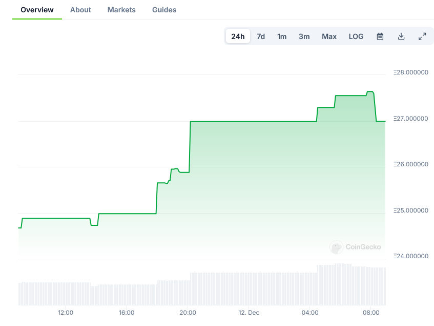 Pudgy Penguins NFT floor price has reached 27 ETH ($102,600), surpassing Bitcoin’s price of $101,000 for the first time in its history