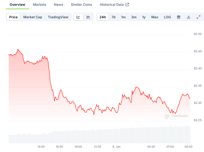 Market data indicates the presence of a substantial liquidation pool at the $2.47 price level, comprising approximately 2.87 million XRP. This concentration of positions could influence price action as the market approaches this threshold.