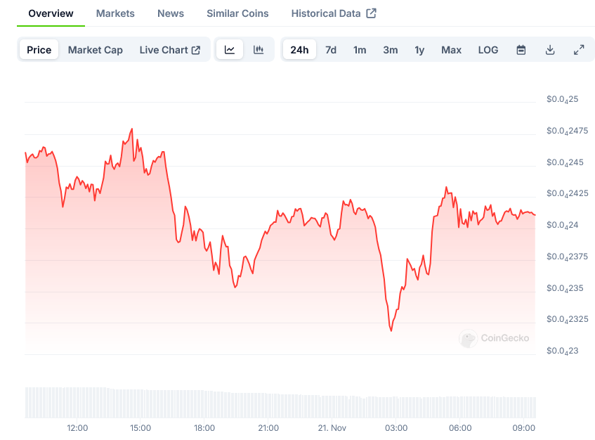 The token’s technical indicators present a mixed picture, with some metrics suggesting potential price support at current levels. The 24-hour trading range demonstrates typical market dynamics for the asset class.