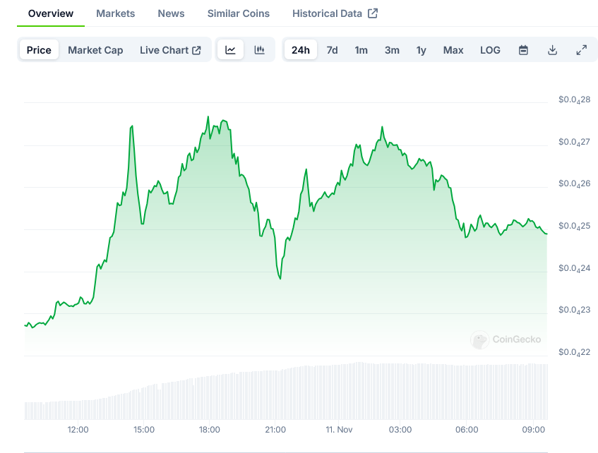 Trading volume has seen a substantial increase, rising 245% to reach $6.08 billion. The price of SHIB reached $0.00002467, marking a 9% increase over 24 hours, with an intraday trading range between $0.00002213 and $0.00002785.