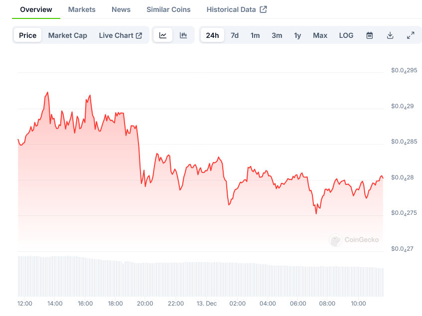 Trading at $0.000029 with 8% gain in 24 hours