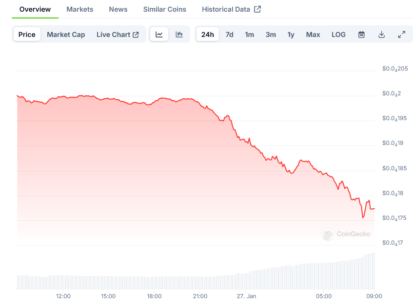 The meme cryptocurrency market as a whole has experienced declining momentum, with traders adopting a cautious approach ahead of the January 29 FOMC meeting. This broader market downturn has contributed to increased liquidations across the cryptocurrency sector.
