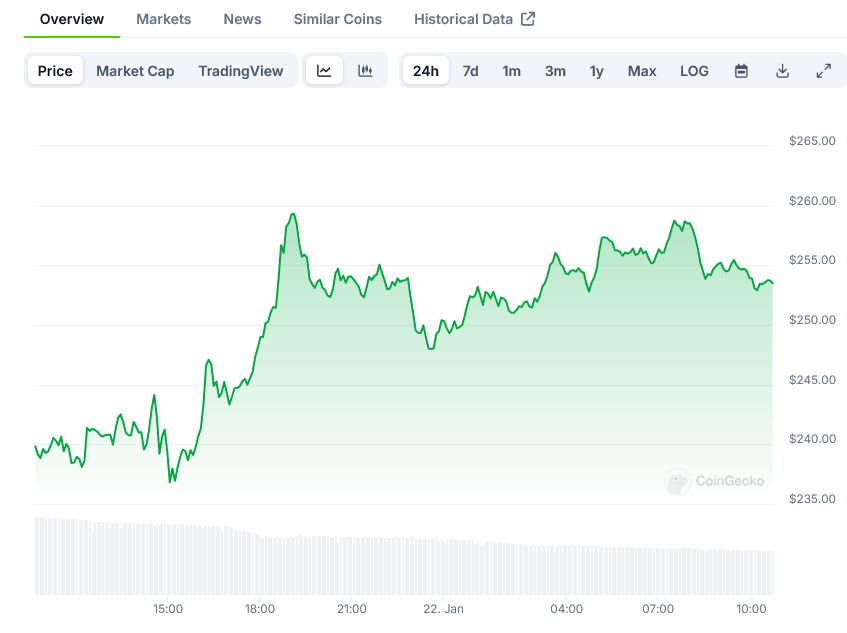 Technical analysis supports this bullish sentiment, with SOL recently breaking above several key resistance levels. The price has successfully moved past both $240 and $250, establishing new support zones in these areas.