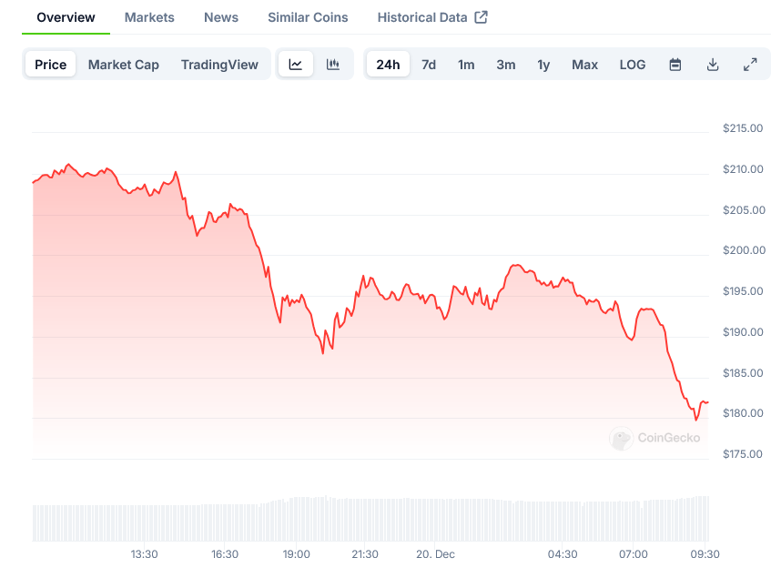 The Solana blockchain continues to demonstrate market resilience, maintaining its position above the $210 support level despite experiencing a 7% price decline following the Federal Reserve’s recent monetary policy announcement. The Fed’s decision to implement a 25 basis point rate cut, coupled with projections of fewer rate cuts for 2024, triggered immediate market reactions across the cryptocurrency sector.