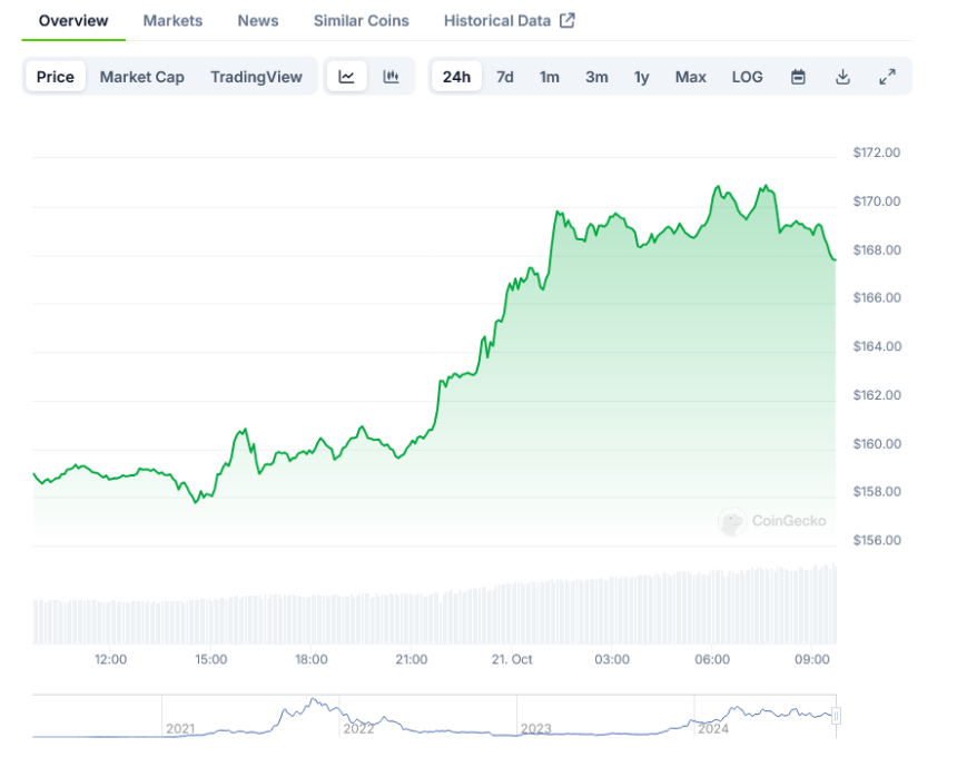 Solana (SOL) has captured the attention of investors as its price soared past $170, marking a two-month high and igniting speculation about further gains before October ends. This surge comes amid a broader crypto market rally, with Bitcoin recently touching $69,400.