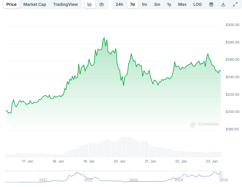 Market observers note that clearing the $275 resistance level could pave the way for SOL to approach the $300 mark. However, a drop below $250 might trigger a corrective phase, potentially testing support at $221.64.