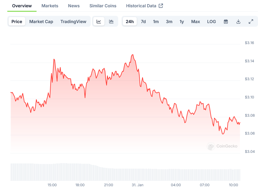 The cryptocurrency faces immediate resistance at $3.150 with major resistance at $3.20 level