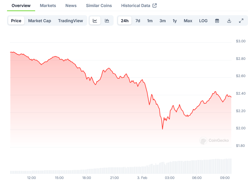 Market observers continue to track technical indicators for signs of trend reversal or continuation. The current price level of $2.23 represents a key area of interest for traders and investors.