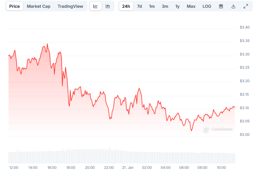 Recent market activity indicates that buyers remain active above the $3.00 threshold, with consistent volume supporting price recoveries from dips. This buying pressure has helped maintain the asset’s position within its established trading range.