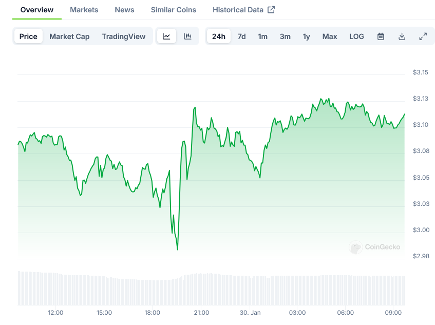 Looking at potential resistance levels, the first major hurdle appears at $3.10, followed by a more substantial resistance zone near $3.150. A successful break above these levels could open the path toward the $3.20 mark.