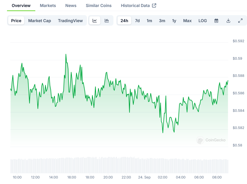 This forecast suggests moderate growth from current levels, which see XRP trading around $0.57 as of September 2024.
