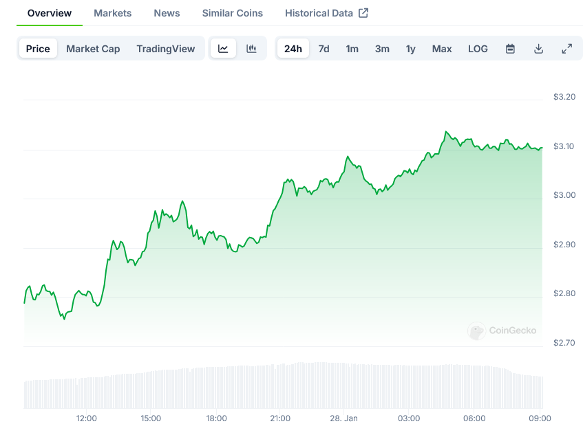 Market analysts point to $3.37 as a crucial short-term target that could act as a pivot point for future price action. This level aligns with several technical indicators and historical price patterns.