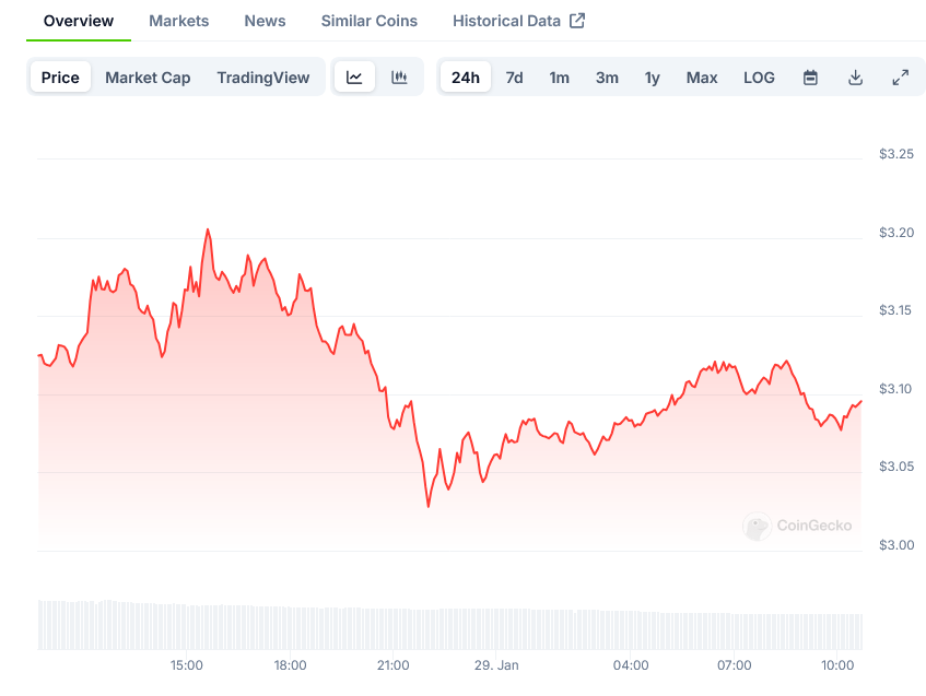 Trading volume patterns have shown interesting developments during this period. The On-Balance Volume (OBV) indicator has recorded lower highs and lower lows throughout the second half of January, suggesting the price retracement from $3.4 was accompanied by distribution rather than accumulation.
