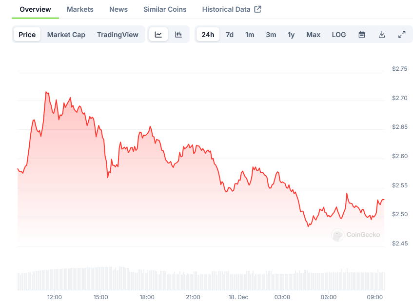 CoinCodex presents a contrasting view, projecting a potential decline to $2.05 by January 17, 2025. This forecast stands against the current market sentiment, which remains predominantly bullish according to various technical indicators.