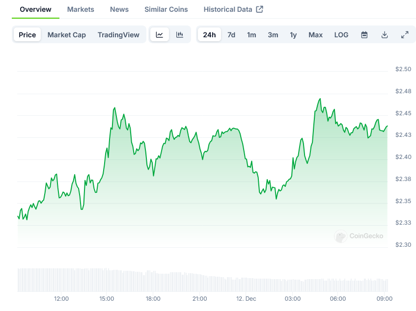 Recent price action places XRP’s next technical resistance at $2.50, with potential for movement toward $2.550 if buying pressure continues. Support has formed around the $2.280 level, providing a foundation for current price levels.