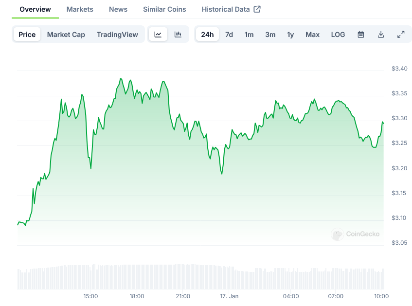 The surge in XRP trading coincides with a remarkable price increase. Since November 2024, XRP’s value has grown by more than 600%, reaching $3.33 – its highest level since 2017. This week alone has seen a 33% increase in valuation, according to data from CoinDesk and TradingView.